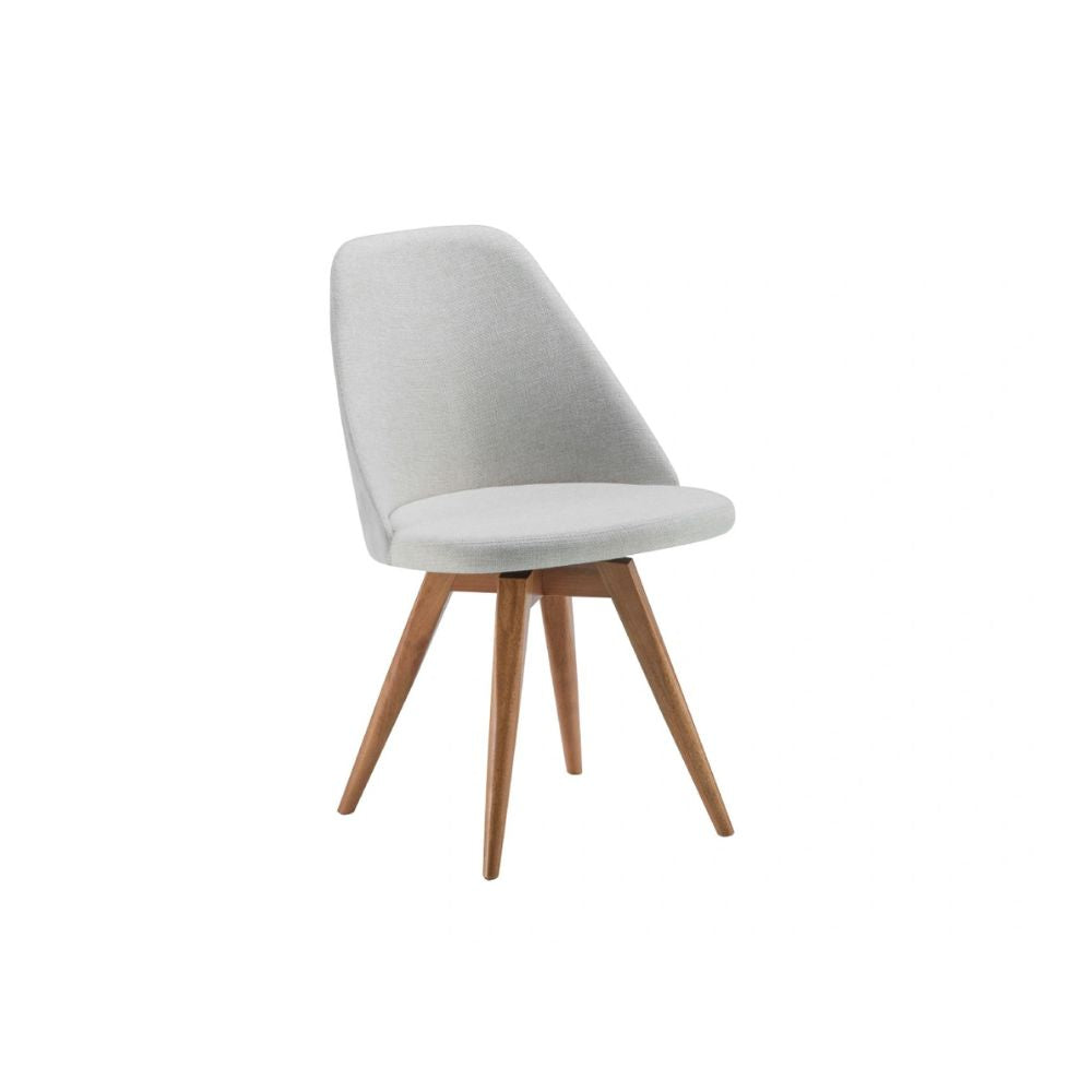 Estrutura em madeira maciça de eucalipto, disponível com sistema fixo ou sistema giratório em aço e nylon, de movimento suave e alta resistência desenvolvido pela J.Marcon. Concha em MDF ergonômico, estofada com espuma de boa densidade e revestida com tecido de alta qualidade. Produto fornecido desmontado, sendo necessário apenas parafusar os pés a concha.