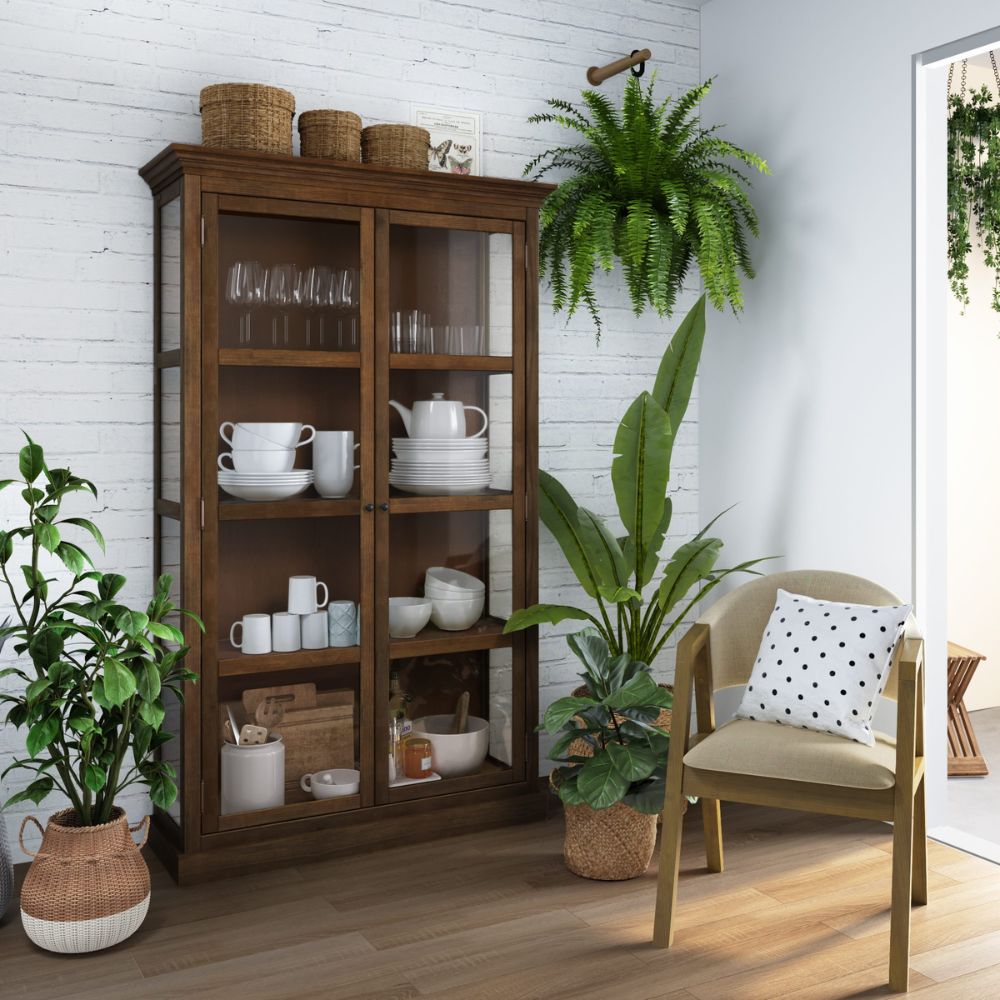 A cristaleira de madeira Ranger apresenta um design clássico e sofisticado, com linhas retas e elegantes que conferem um ar atemporal ao ambiente.