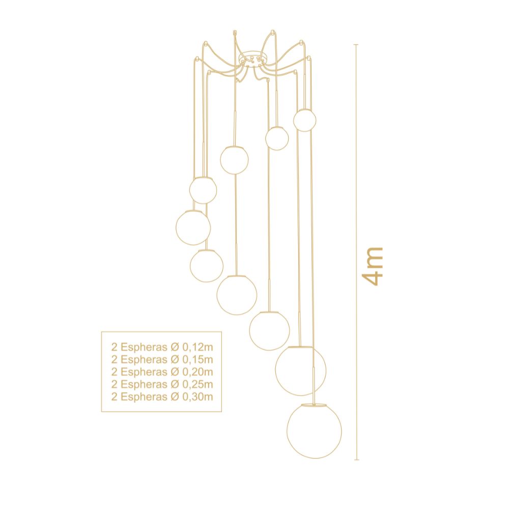 Pendente Cascata Milky 10 Lâmpadas Diâmetro 12, 15, 20, 25 e 30 cm Madelustre
