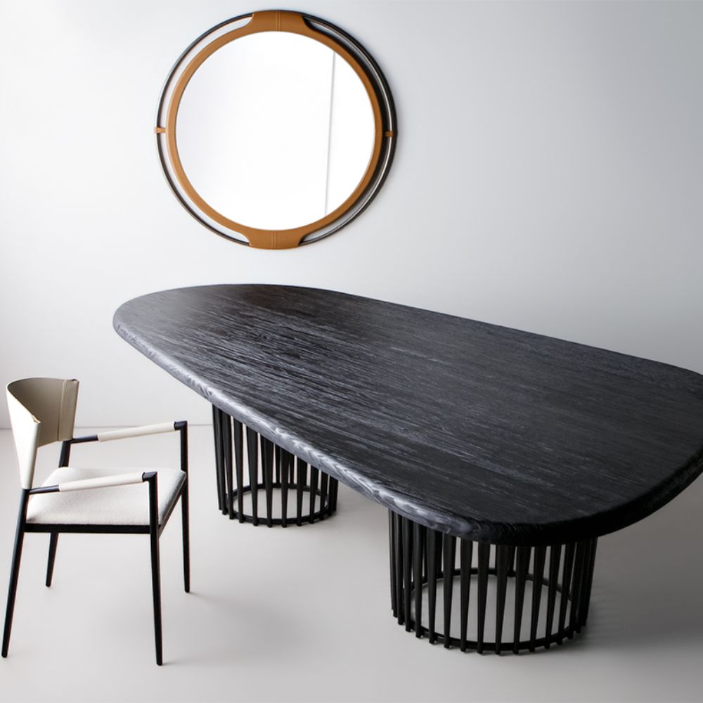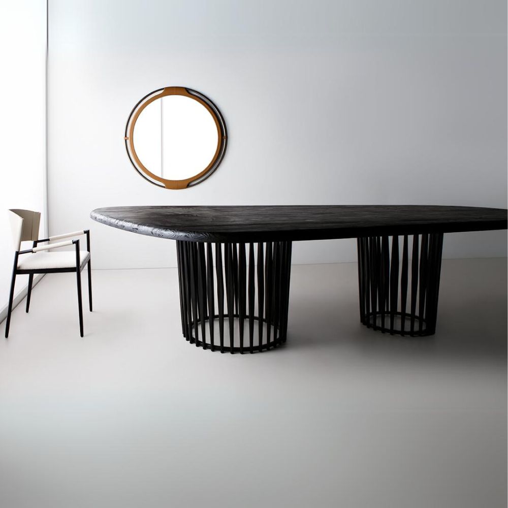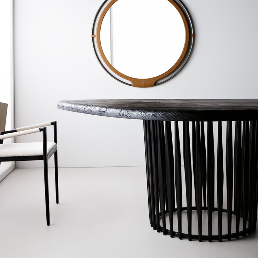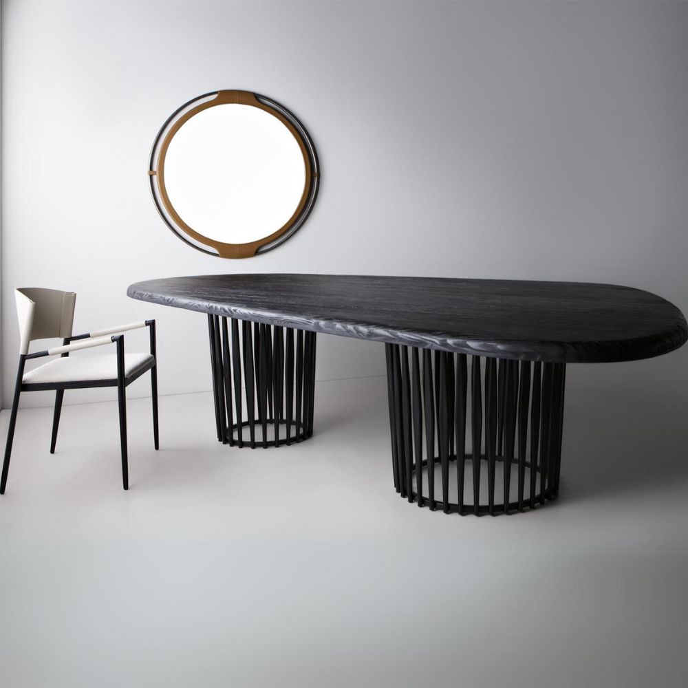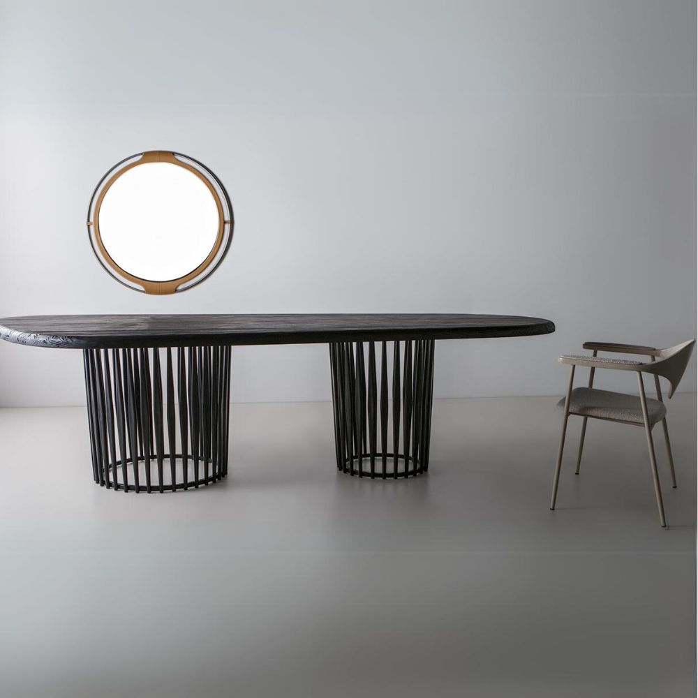 Mesa de jantar em metal e tampo em pinus clear.