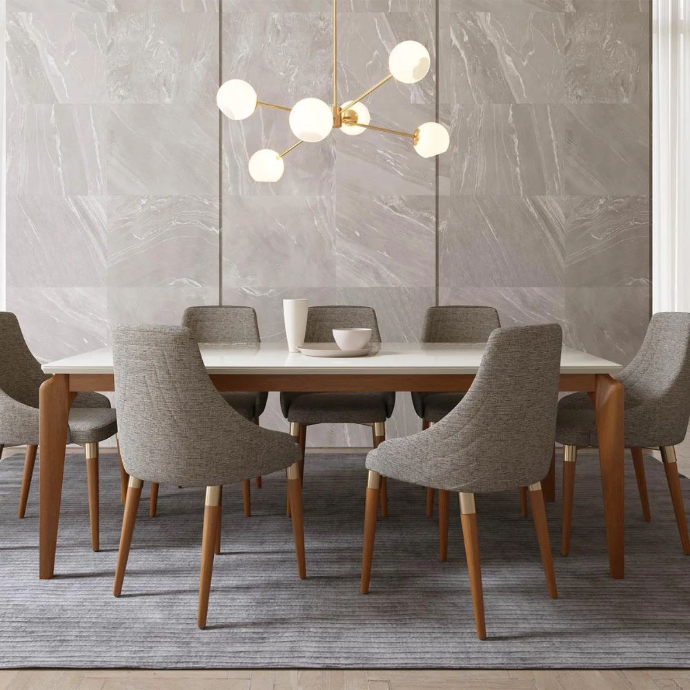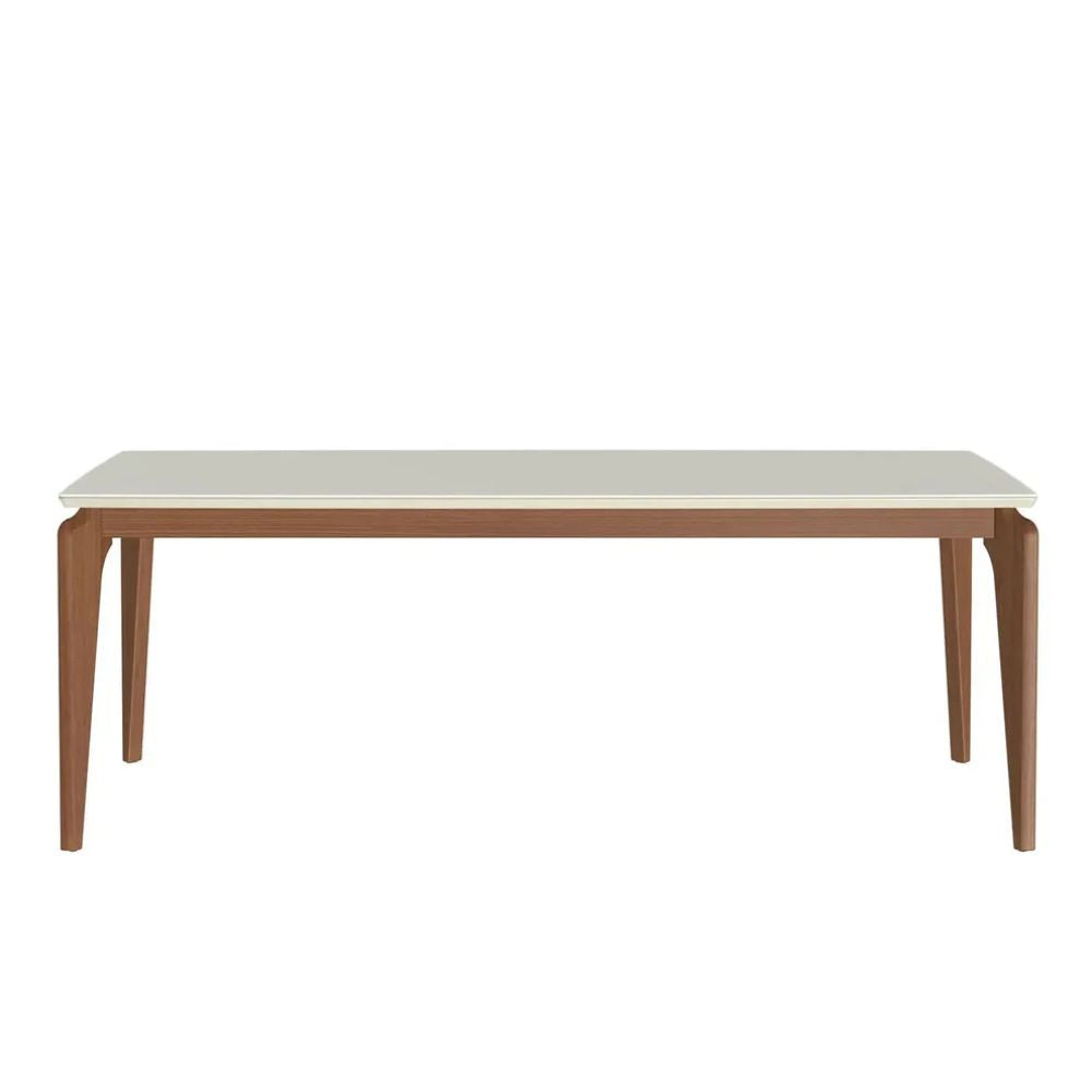 Mesa de Jantar Lauren com Tampo de Vidro Natural com Off-White Fosco