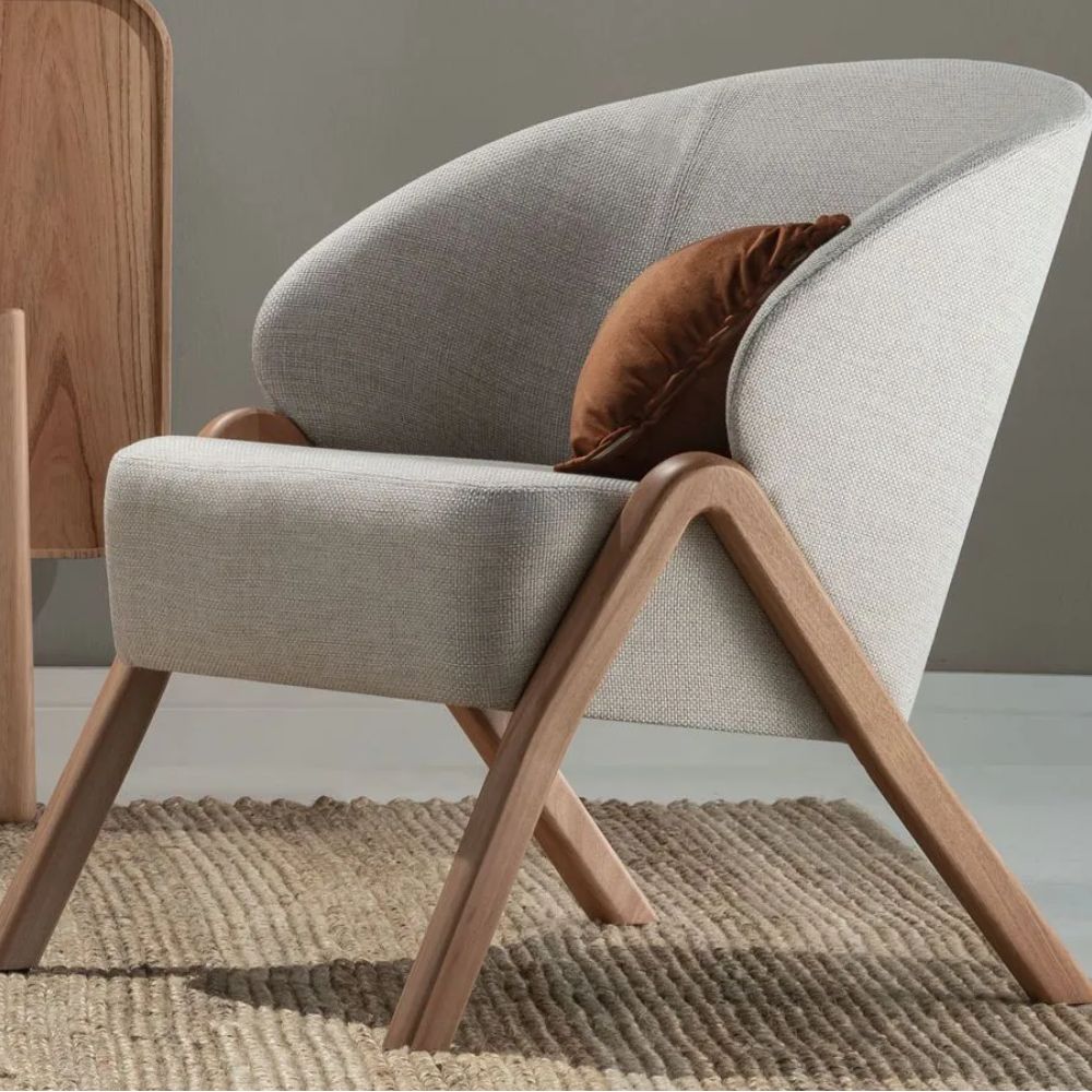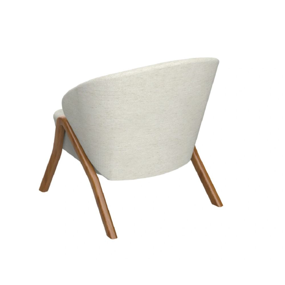 Estrutura em madeira maciça de eucalipto. Concha em MDF ergonômico, estofada com espuma de boa densidade, com um toque de fibra no interno de seu espaldar para potencializar o conforto e revestida com tecido de alta qualidade. Produto fornecido montado.