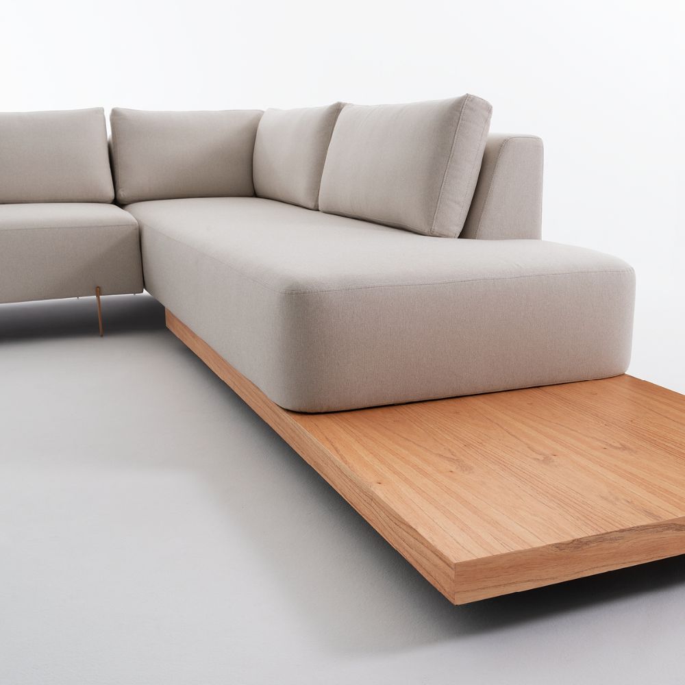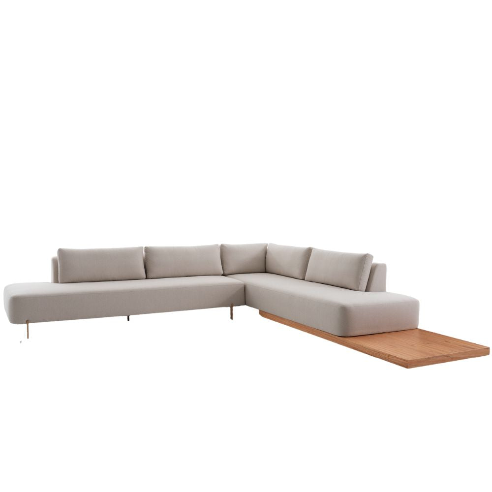 Sofá alongado 255cm + Chaise 275cm + Mesa | Tecido 2A69 | Pés e Mesa TG 001