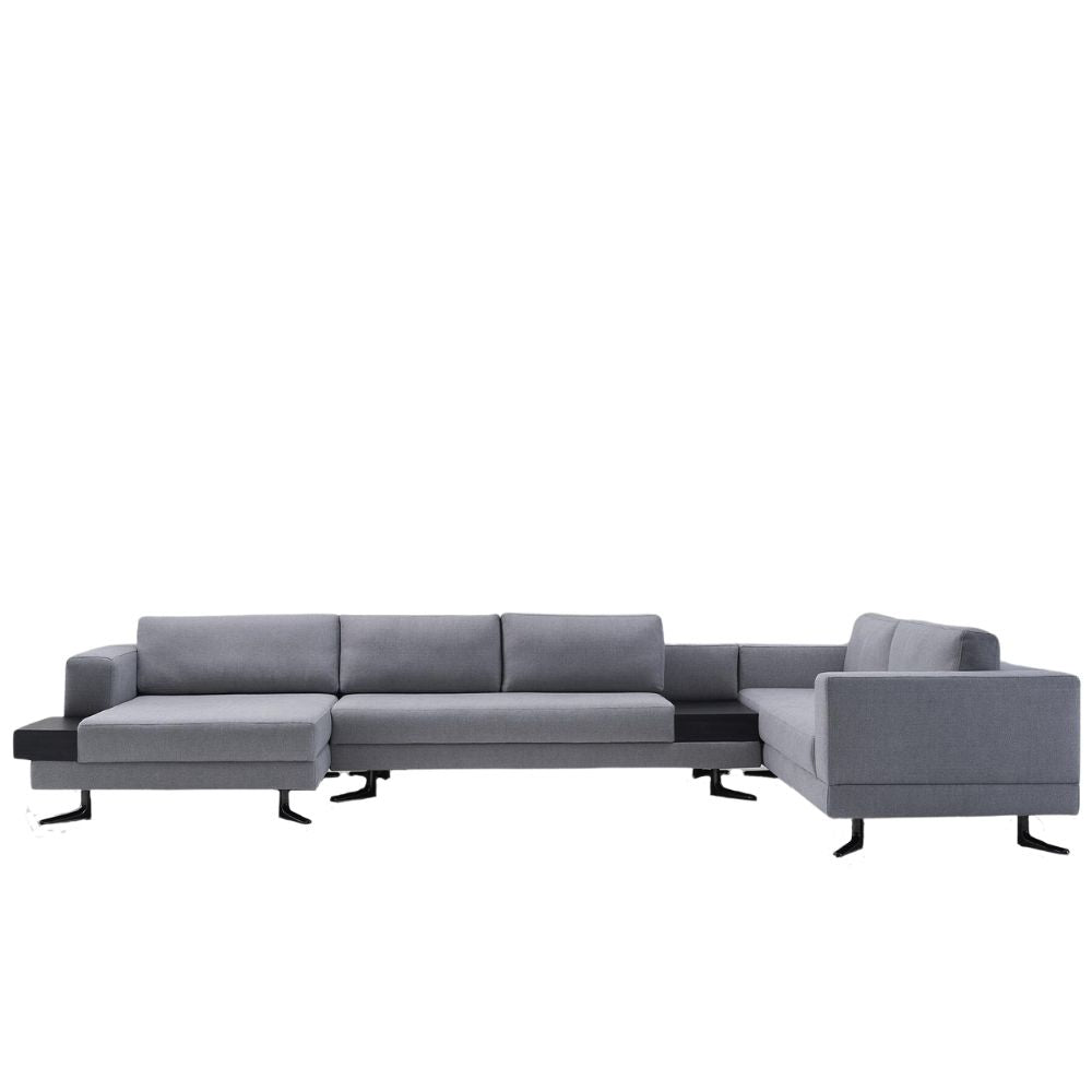 Chaise 122 cm com 1 braço e 1 mesa + Sofá mesa - sofá fixo 240 cm sem braço + Sofá fixo 244 cm com 2 braços